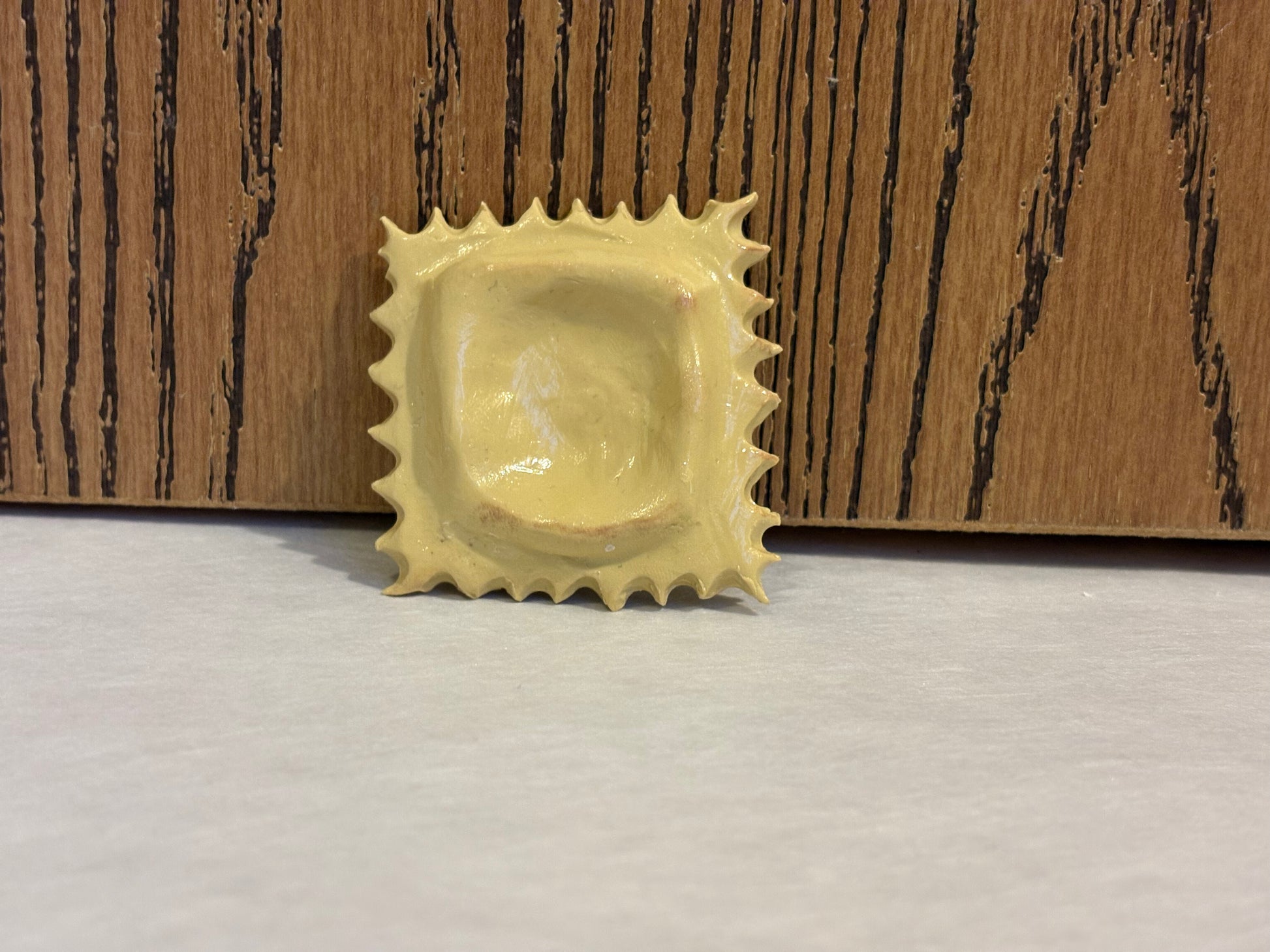 Do you like pasta? Do you like jewelry? Have you always wanted to put your jewelry in a ravioli but didn’t want to tarnish the metal? This little guy is the solution! Yeah he’s not very big, but he’s enough for a little ring, maybe a dainty chain, regardless of what you chose him for, he’s holding onto it!